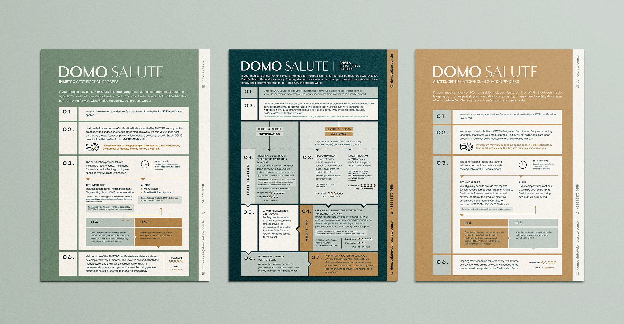 DOMO Salute is a regulatory consulting firm that streamlines the entry of medical devices, IVDs, and digital health solutions into the Brazilian market. They manage all the "paperwork" and legislation with regulatory agencies like INMETRO, ANVISA, and ANATEL. Their key strength lies in building trust through excellent client communication during this process.